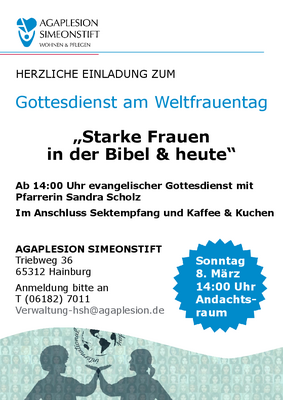 In diesem Gottesdienst beleuchten wir die Rolle der Frauen in der Gesellschaft und in der Arbeitswelt. Der Gottesdienst hat für das AGAPLESION SIMEONSTIFT als Haus des hessichen Diakonievereins besondere Relevanz, da gerade die Schwesternschaften und die Diakonie den Eintritt in das Arbeitsleben für Frauen im letzten Jahrhundert ermöglichten. Pfarrerin Sandra Scholz (Profilstelle Ökumene und Gesellschaftliche Verantwortung, Dekanat Dreieich Dreiech-Rodgau) verbindet starke Frauen aus der Bibel mit deren Bedeutung für die Fragen der Gegenwart. Mutige Biographien aus der Schwesterschaft des hessischen Diakonievereins erzählen von Widerstand und Zivilcourage. Auch die Bewohner:innen kommen zu Wort.